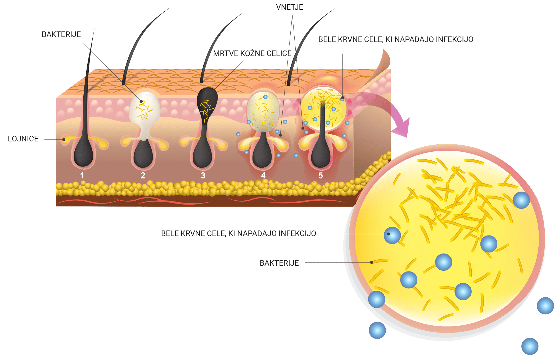 - A baktériumok és a genny még mélyebbre kerülnek a bőrben.