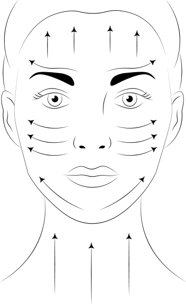 Tartsd a követ 45°-os szögben, és enyhe nyomással húzd végig a bőrön az orrtól az arc szélei felé, valamint a homlokon és a nyakon felfelé.